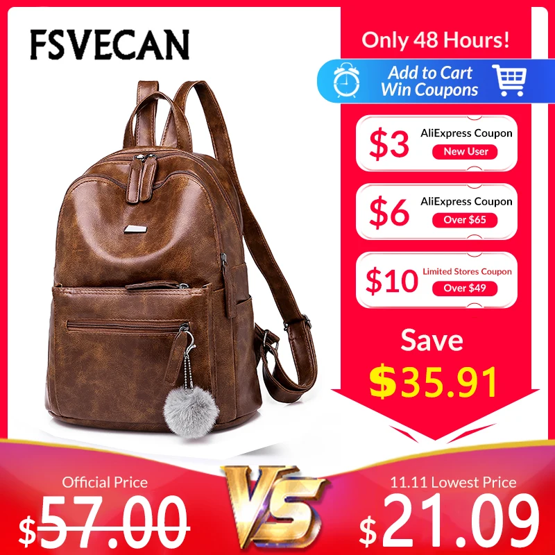 Home » backpack , hot product , travel » Free Shipping Luxury Brand Vintage Backpack Female PU Leather Brown College Anti Theft Backpack Women Travel Ladi