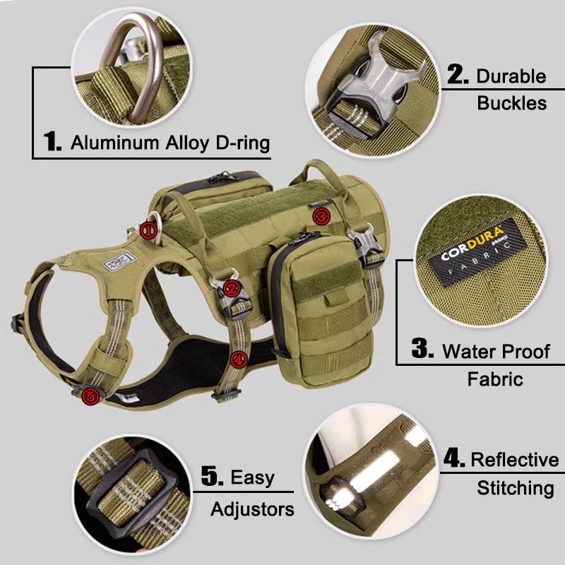 Special Product Truelove Dog Harness Backpack Bag Saddle Military Tactical Waterproof Harness Pet Dog Backpack Carr