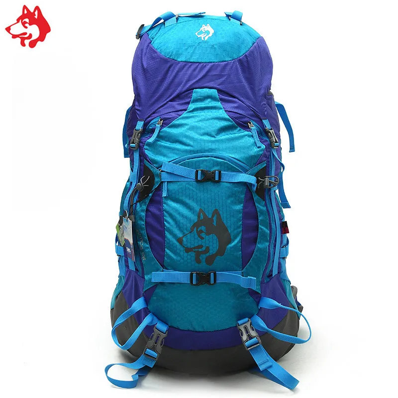 Discount Wholesale 55L Blue/yellow/Green camping Hiking Sports Travel nylon multi function outdoor sports ba