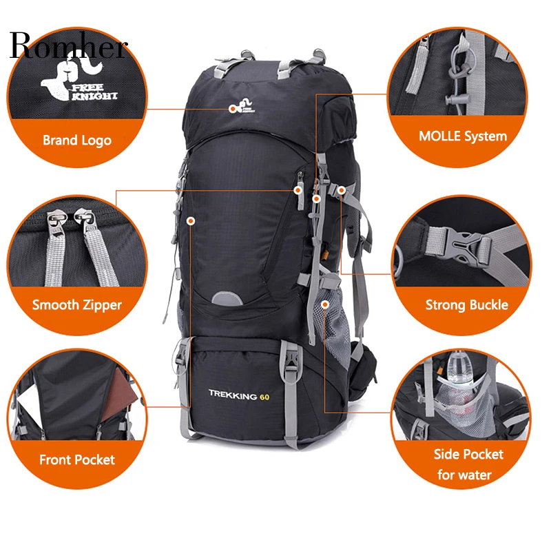 Get Romhe Free Knight 60l Outdoor Hiking Backpacks Rucksack Sport Backpack Travel Climbing Bags Waterpr