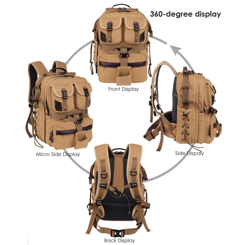New Camera Canvas Soft Shoulders DSLR Waterproof Large Capacity Travel Backpack Bag Video Photo Tripod
