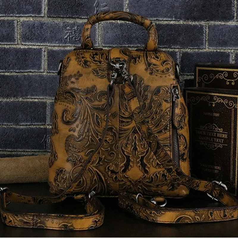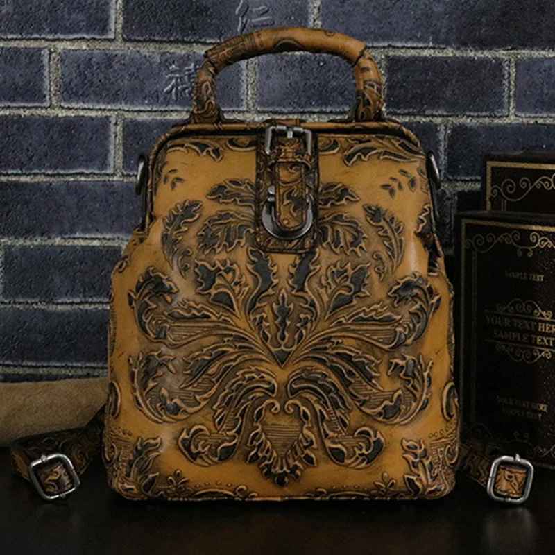 Best Women Embossed Rucksack Crossbody Messenger Tote Bag Knapsack Top Quality Genuine Leather Girls Day