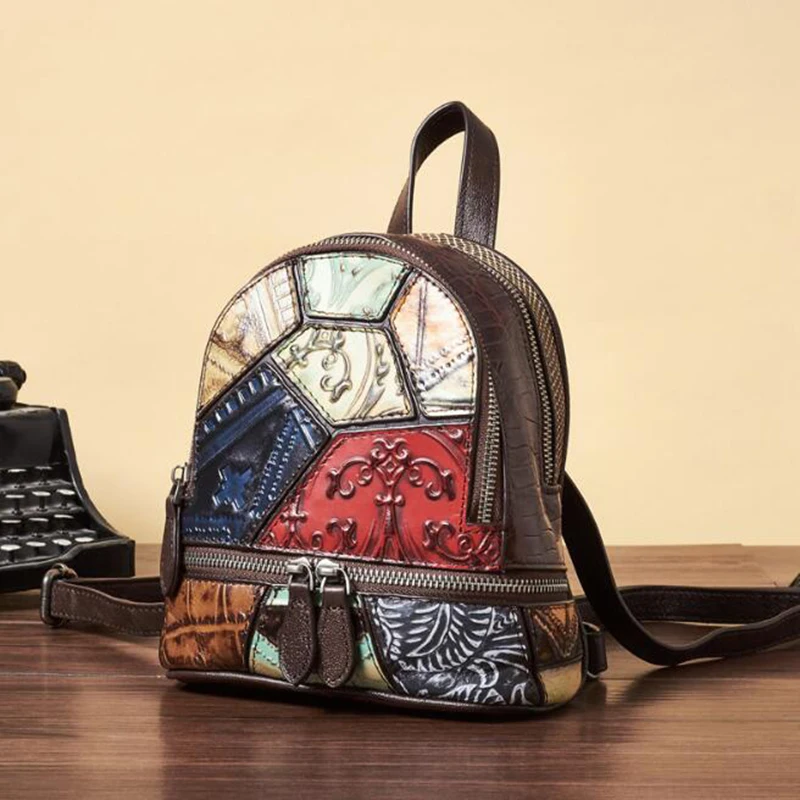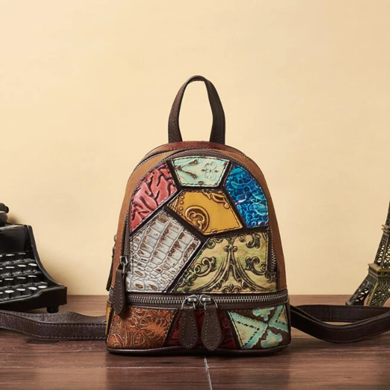 Special Product Genuine Leather Women Backpack Special Design Splice Travel Backpacks Small Multifunctional Backapc