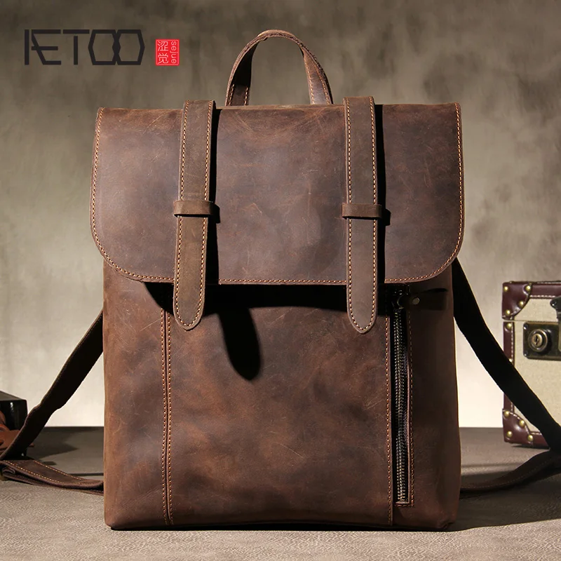 » Discount AETOO Mad horse leather shoulder bag vintage handmade leather men's backpack one-shoulder diagonal