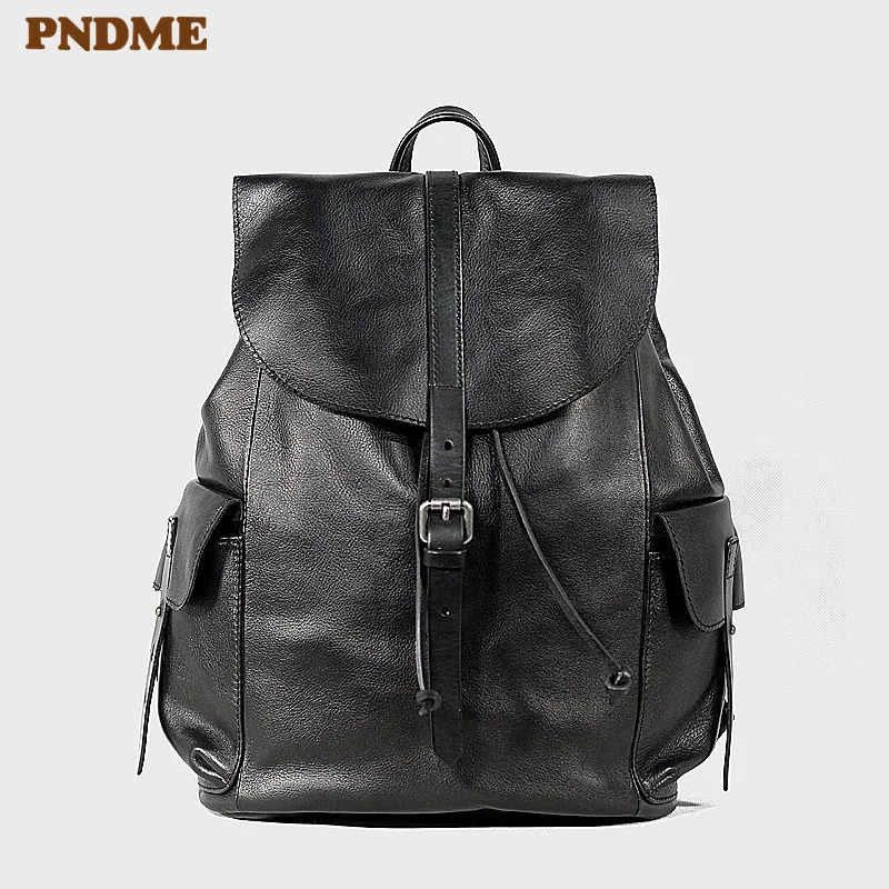 Discount PNDME casual designer high quality genuine leather men's women's backpack simple daily soft cowhide