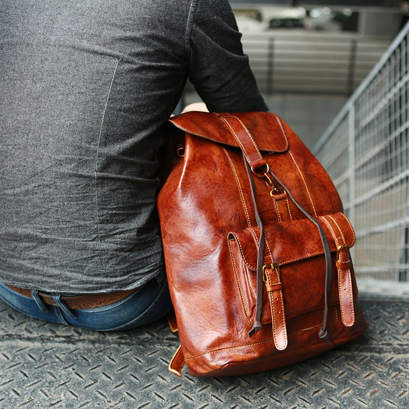 • Special Vintage leather Men's backpack crazy horse leather bag men top layer leather travel backpacks male