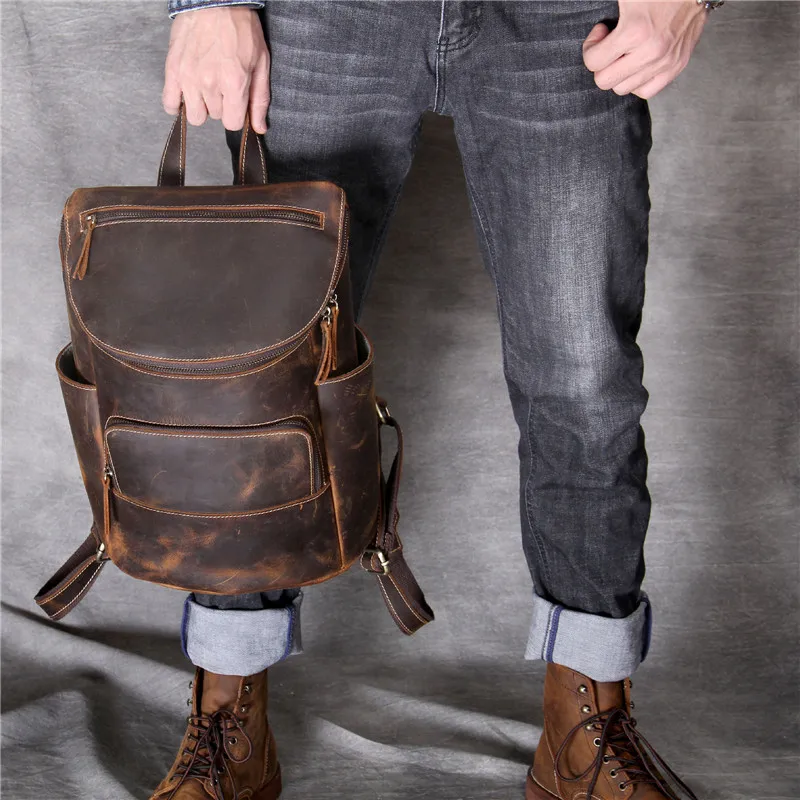 • Special Vintage leather Men's backpack crazy horse leather bag men top layer leather travel backpacks male