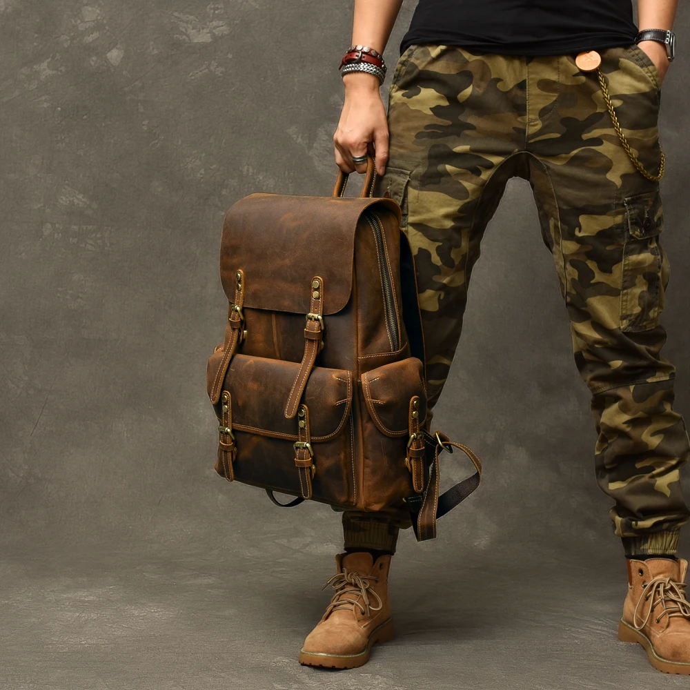 • Special Vintage leather Men's backpack crazy horse leather bag men top layer leather travel backpacks male