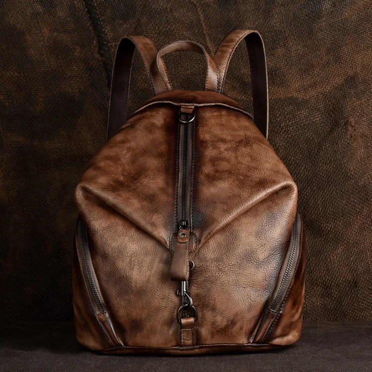 • Special Vintage leather Men's backpack crazy horse leather bag men top layer leather travel backpacks male