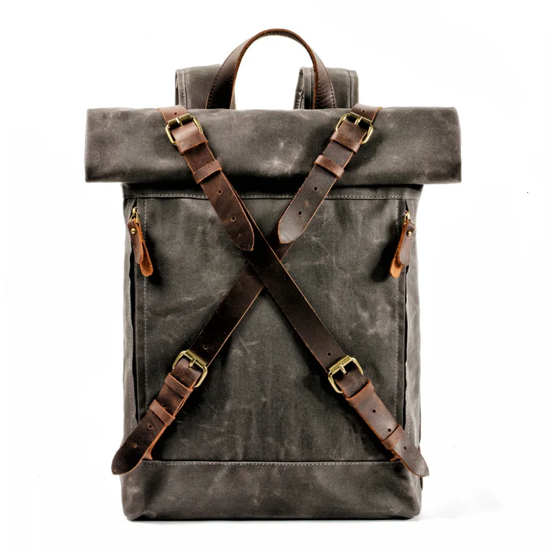 Home » backpack , hot product , travel » Cheap Backpacks Unisex Hard Oil Waxed Canvas Leather Criss-Cross Waterproof Backpack Men for Travel 15" L